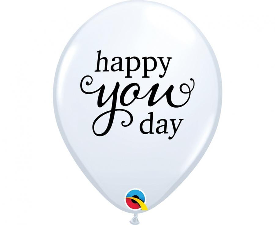 Balon QL 11" RND biały z nadr. Happy you day, 25 szt.