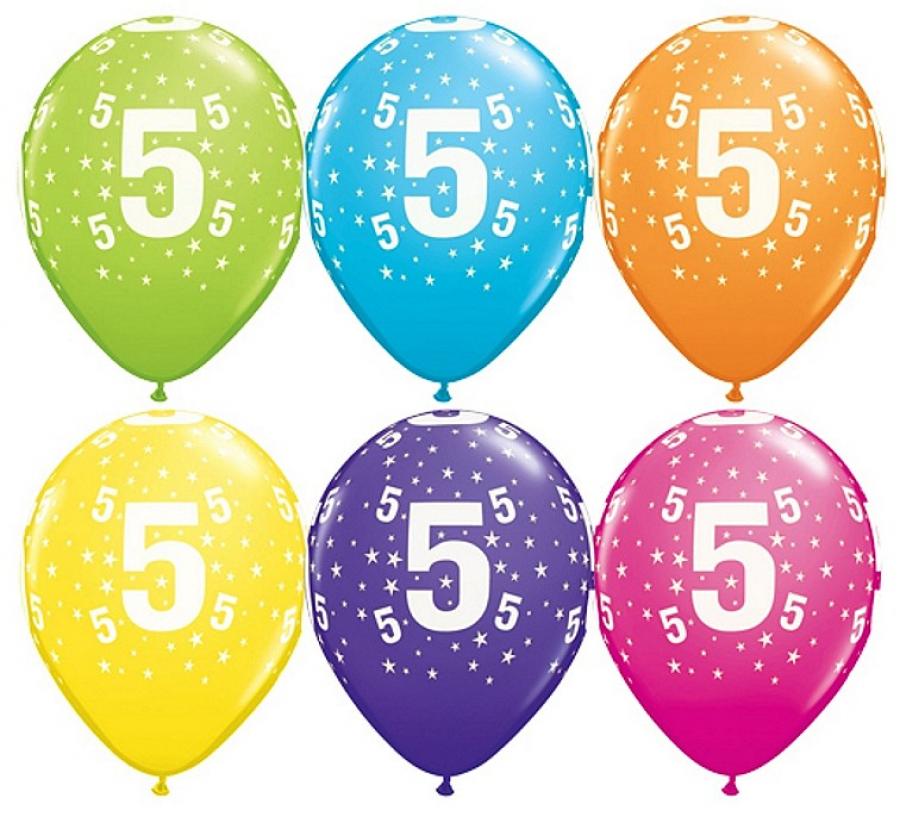 Balon QL 11" z nadr. "5", pastel mix tropikalny / 25 szt.
