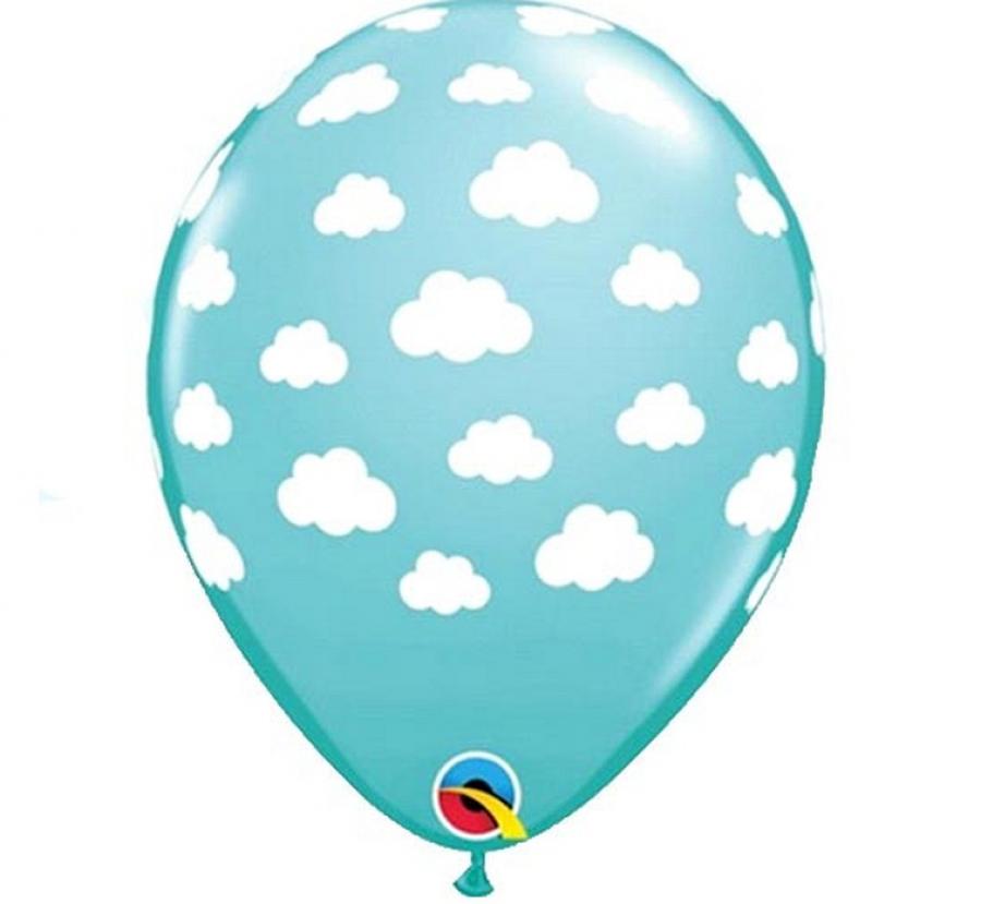 Balon QL 11" z nadr. " Clouds ", pastel błękitny karaibski/ 25 szt.