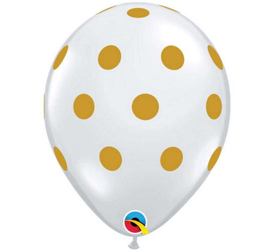 Balon QL 11" z nadr. "Duże Grochy", złote / 25 szt.