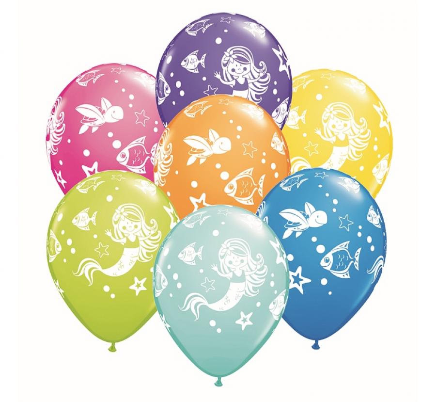 Balon QL 11" z nadr. "Wesoła Syrenka i Przyjaciele", pastel mix / 25 szt.