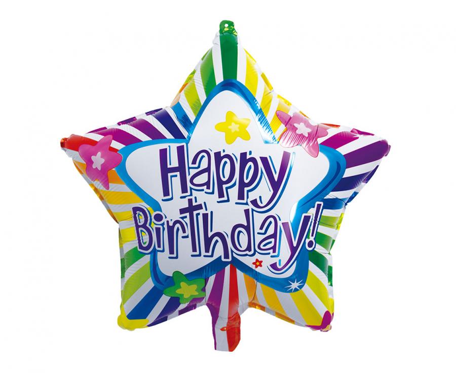 Balon foliowy Happy Birthday, gwiazda, 19"