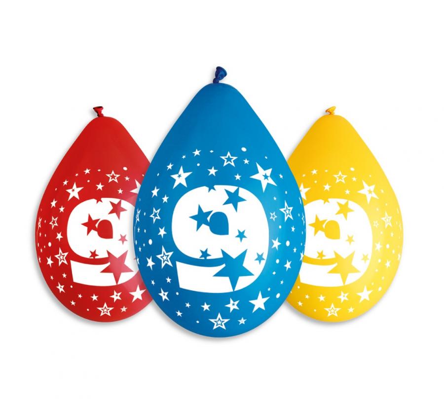 Balony 12" z nadr. "9", pastel mix / 5 szt. (wiszące)