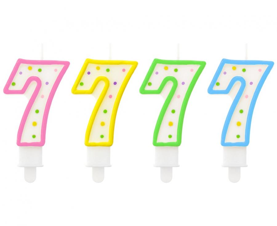 Świeczka cyferka z kropeczkami 7, 7.5 cm